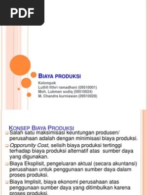 Biaya Produksi Adalah Pdf : Unduh Perencanaan Dan Pengawasan Biaya Produksi Pada Pt Pd Paya Pinang Medan Pdf Dokdrive : Produksi adalah suatu kegiatan yang dikerjakan untuk menambah nilai guna suatu benda atau menciptakan benda baru sehingga lebih bermanfaat dalam memenuhi kebutuhan.